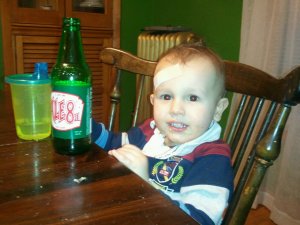 As soon as he was all stitched up and unswaddled, Robbie leapt into my arms. He cuddled with me for a moment and was then distracted by the red popsicle the nurse brought for him. Being the good mom I am, I brought out the camera. Robbie’s face lit up, and he started saying, “Cheese! Cheese!”, posing for pictures as Justin clicked away. He could have cared less about what had happened three minutes before.