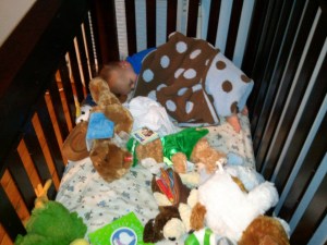 I am not a good bedtime Mom. Something about me makes Robbie want to run around like a mad man. He doesn’t like to sit on my lap and read a story or say prayers. He doesn’t want to sing songs or cuddle. No, my child wants to “watch TD Elmo” every night. I have started telling him that Elmo went to bed like a good boy, and he seems to be buying that for the time being. I cannot, however, get him to stop saying “TD”. Since he’s changed the way he meows, though, I’m going to relish his mispronunciations for a while.