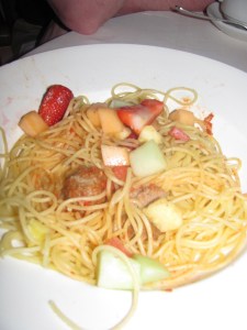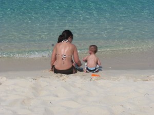 Just to drift for a minute… Robbie learned how to really meow on our cruise. He’s been saying “ow!” when asked what a kitty says. However, two boys were pretending to be cats at the pool on vacation, crawling around the edge and then creeping back into the water (I guess they weren’t typical cats, since they liked the water). Anyway, Robbie joined in, and the three of them meowed for about five minutes while they circled the pool. He hasn’t “ow”ed since…
