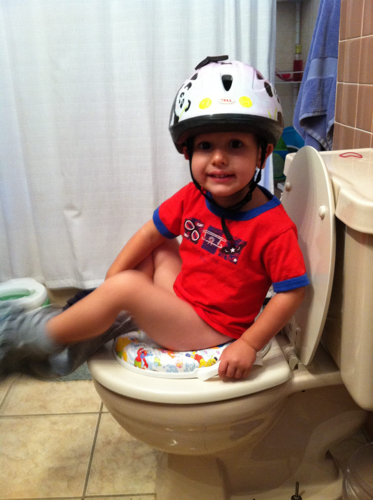 Our helmet fun continued Saturday morning for a little Xtreme Potty Training. After all, you never know when you might take a digger off the toilet. And it must have worked because he used the potty twice.