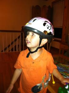 We all know that Robbie gets in his phases… And last Friday was no exception. While we were outside (finally) cleaning up from Hurricane Irene, Robbie got a very special present from Leyli. I’m not even going to make you guess because you will never get it. Never. Unless, of course, your guess was a pink panda bicycle helmet. Because then you would be correct.