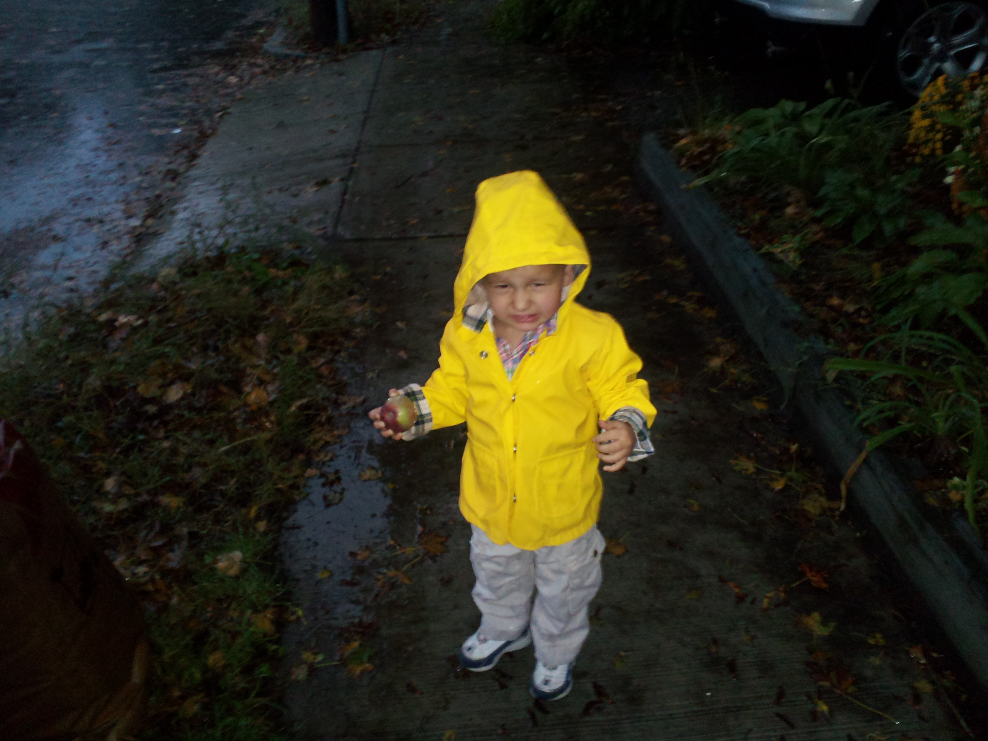 Official deal, yes. But not one I expected Robbie to remember. He didn’t mention it at all when we came downstairs in the morning, although that may be because I was yelling at him to “Hurry! Hurry!” We got home late tonight, and I left Robbie inside while I let Barkley out and took out the trash. I brought Barkley back in, hoping to find my house still in one piece.