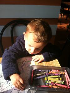 After spending the afternoon at Old Sturbridge Village, Tom and Justin brought Robbie back to the house for a nap while Mom, Halaree, Hunter, and I went to the grocery store. Except Robbie never went to sleep.