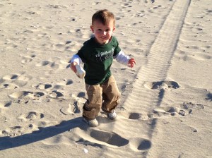 And then he took off his diaper. And ran around the beach naked for about thirty seconds before deciding it was time to put his diaper back on and avoid sand in uncomfortable places. However, Robbie did give his father just enough running around to see his naked behind from 200-yards away.