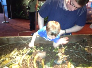 We even visited a few dinosaurs. Once he was finished being terrified of the t-rex who roared in his face, Robbie managed to give him a high five. He dug through some ancient artifacts, too.